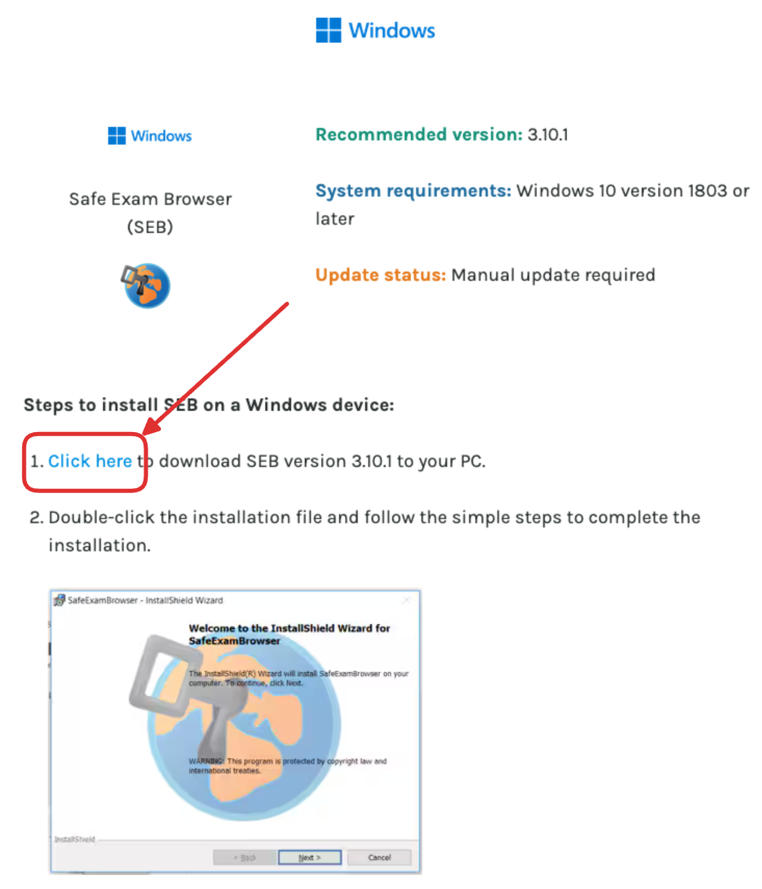 - Öffnen Sie die 👉 offizielle Download-Seite und laden Sie dort die Windows-Version des Safe Exam Browsers (SEB) herunter.